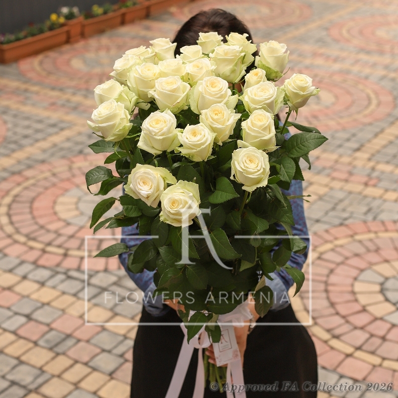 Flowers Shop In Yerevan Flower Delivery In Armenia High Stem White Roses Order Cake In Armenia J 31